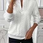 Das Alessia Sweatshirt mit Reißverschluss verbindet lässigen Komfort mit einem aktuellen, eleganten Erscheinungsbild. Das weiche Material sorgt für ein angenehmes Tragegefühl, während der Reißverschluss praktische Anpassungsfähigkeit und Luftzirkulation ermöglicht. Es lässt sich problemlos mit unterschiedlichen Outfits kombinieren – ob für die Freizeit, das Büro oder entspannte Wochenenden. Mit seinem durchdachten Design ist das Alessia Sweatshirt ein unverzichtbares Kleidungsstück für die Übergangszeit und darüber hinaus.