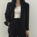 Das Alethea Set vereint eine lockere Jacke mit passender Hose, perfekt für eine Mischung aus Stil und Komfort. Der lockere Schnitt bietet ein angenehmes Tragegefühl und ist sowohl für das Büro als auch für den Alltag geeignet. Das schlichte, moderne Design macht es vielseitig und immer zu einem modischen Highlight.