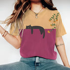 Alvina zeigt ein hübsches zweifarbiges Katzenmotiv auf hochwertiger, sehr weicher Baumwolle. Das T-Shirt hat einen lockeren Stil und ist ideal für den Alltag, die Freizeit oder einen entspannten Tag zu Hause. Das spielerische Motiv bringt Freude in jedes Outfit und lässt sich leicht kombinieren. Mit diesem Shirt entscheiden Sie sich für Komfort und charmanten Stil zugleich.