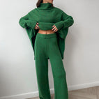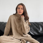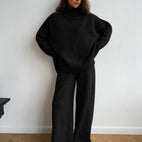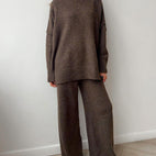 Amara steht für höchsten Komfort kombiniert mit einem Hauch von Stil. Dieses Rollkragen Strickhosen Set vereint einen bequemen Pullover mit passender Hose und kreiert ein harmonisches, elegantes Gesamtbild. Das dehnbare Strickmaterial schmiegt sich sanft an die Haut und lässt Bewegungsfreiheit zu, ohne die Form einzubüßen. Ideal für entspannte Tage oder stilvolle Momente zu Hause – Amara ist ein hervorragendes Beispiel für Komfort und Stil.