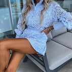 Damen-Spitzen-Set – Bluse mit langen Ärmeln und hoch taillierten Shorts. Ein elegantes und leichtes Set, das Raffinesse und Komfort vereint, ideal für warme Tage und besondere Anlässe.