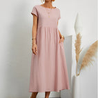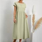 Der luftige Leinenstoff sorgt dafür, dass Sie selbst an den heißesten Tagen bequem und kühl bleiben. Der lockere Schnitt und das fließende Design ermöglichen es, sich einfach zu bewegen, was es zu einer guten Wahl für Aktivitäten im Freien oder Besorgungen macht. Das Caroline-Kleid ist ein Muss für alle, die Bequemlichkeit und Stil schätzen.