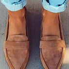 Die Christal Slipper vereinen klassischen Stil mit Bequemlichkeit. Hergestellt aus hochwertigem Wildleder und mit spitzer Zehenform verleihen sie jedem Outfit einen eleganten Akzent. Durch ihr flexibles Design sind sie das ganze Jahr über ideal – ob im Büro, bei einem Ausflug oder zu besonderen Anlässen.