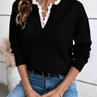 Der „Corrina“-Pullover kombiniert ein feines Strickmuster mit einem eleganten Akzent. Der angenehme Stoff bietet hohen Komfort und die zarten Spitzendetails verleihen einen femininen Charme. Ideal für den Alltag, das Büro oder entspannte Momente – ein stilvoller Begleiter fürs ganze Jahr.