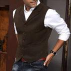 Die ‚Dominick‘ Weste besticht durch ihr stilvolles Aussehen und ihre hervorragende Qualität. Sie lässt sich perfekt mit Anzughosen und Sakkos kombinieren und sieht auch lässig getragen gut aus. Ihr klassischer und zeitloser Stil macht sie zu einem flexiblen Begleiter – egal ob bei Hochzeiten, im Büro oder auf Partys. Mit ‚Dominick‘ rundet man sein Outfit elegant ab.