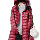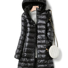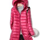Leichte Wärme: Die Elina-Jacke ist darauf ausgelegt, Sie warm zu halten, ohne zu schwer zu sein. Ihre ultraleichte Daunenfüllung bietet genau die richtige Wärmemenge, was sie ideal für kühle Tage macht, ohne zu belasten.