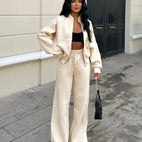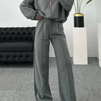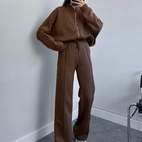 Damen Anzug - Oversize Sweatshirt mit Reißverschluss - Weite Hose mit hoher Taille - Komfort Fit: Die perfekte Kombination aus Komfort und Stil. Genießen Sie den lässigen Schnitt mit einem Oversize-Sweatshirt mit Reißverschluss und einer weiten Hose mit hoher Taille.