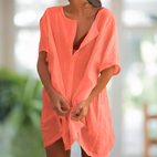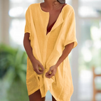 Dieses entspannte Baumwolle-Leinen Kleid von Hilda vereint Stil und Komfort für lockere Sommerabenteuer oder entspannte Tage zu Hause. Mit seinem leichten Stoffmix und dem bequemen Schnitt bietet es Komfort und zeitlosen Stil.