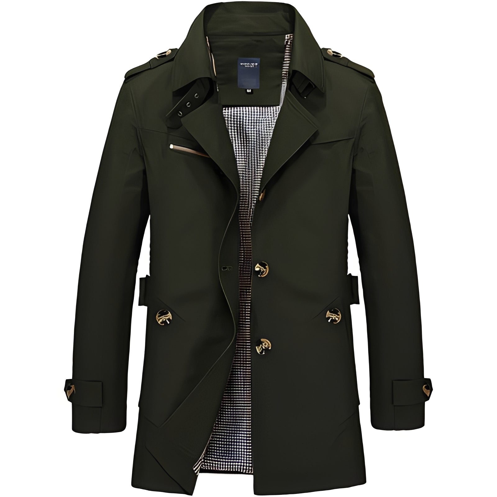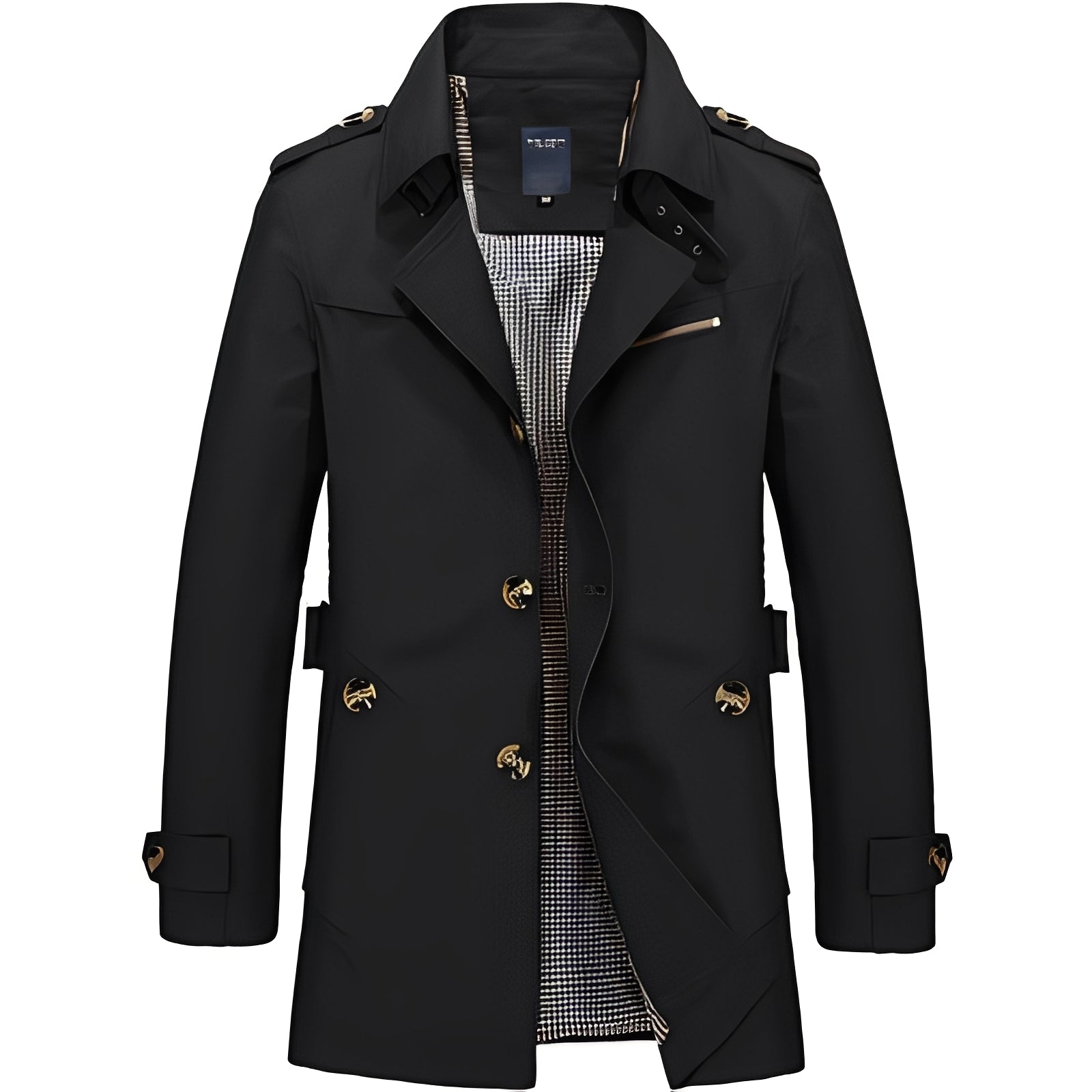 Der James Trenchcoat verbindet traditionelle Eleganz mit modernem Komfort. Das leichte Material ist ideal für Frühling und Herbst, während der modische Schnitt einen gepflegten, männlichen Look unterstreicht. Egal ob im Büro, auf Reisen oder im Alltag – dieser Mantel verleiht jedem Outfit eine elegante Note.