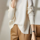 Karolyn beeindruckt mit ihrem figurbetonten Design und einem seitlichen Schlitz, der dem klassischen Wollpullover einen modernen Touch gibt. Das hochwertige Material bietet Wärme und angenehmen Tragekomfort, perfekt für die kälteren Herbsttage. In elegantem Blau passt sie gut zu Hosen und Röcken und fügt jedem Outfit ein Hauch von Vintage hinzu.