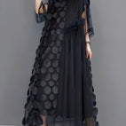 Das Kassandra-Kleid besticht durch sein leichtes Tüll-Design und die verschieden langen Ärmel, die einen modernen Akzent setzen. Der klassische Rundhalsausschnitt sorgt für zeitlose Eleganz, während der lockere Schnitt Bewegungsfreiheit und Bequemlichkeit bietet. Ideal für Partys, Abendveranstaltungen oder elegante Dinner. Ein Kleid, das feminine Anmut und festlichen Charme verkörpert.
