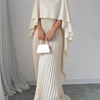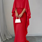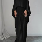 Das lange Kleid Katherine hat einen hohen Kragen, weite Fledermausärmel und einen fließenden, plissierten Rock. Der lockere Schnitt sorgt für viel Tragekomfort, während das stilvolle Design sanft jede Bewegung umspielt. Perfekt für Feiern, Abendessen oder besondere Anlässe, die einen eleganten Auftritt verlangen.