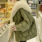 Warum die ‚Marjorie - Weit geschnittene Daunenjacke mit grünem Fellkragen für Damen‘ ein Muss in Ihrer Garderobe ist: