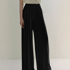 Feminine Eleganz – die Hose mit hohem Schnitt und sanften Falten.