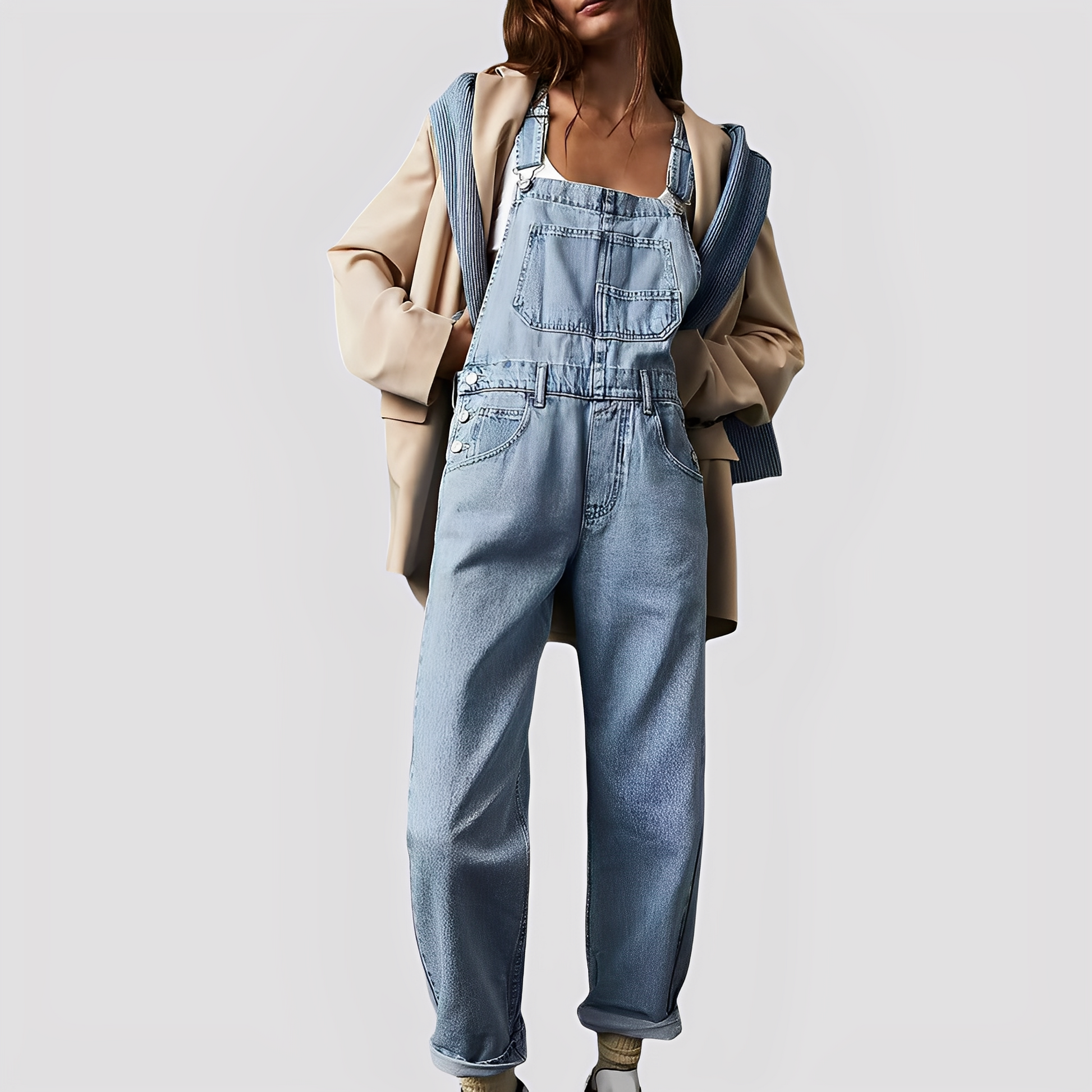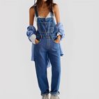 Die Mildred Jeans-Latzhose überzeugt durch ihren entspannten Schnitt und den hochwertigen Jeansstoff, der sowohl komfortabel als auch robust ist. Sie hat nützliche Taschen und verstellbare Träger für Vielseitigkeit und Zweckmäßigkeit. Ihr lässiger, entspannter Look ist perfekt für die Freizeit, Ausflüge oder entspannte Tage.