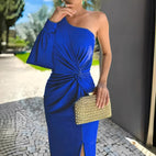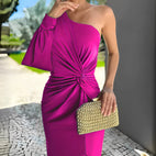Das Pauline Kleid mit einer Schulter fällt durch sein asymmetrisches Design und die schicken Falten auf. Aus hochwertigem Stoff gefertigt, legt es sich sanft an den Körper und betont die weibliche Ausstrahlung. Die Kombination aus klassischem Stil und modernem Chic macht dieses Kleid zur idealen Wahl für Feiern, Partys oder elegante Abende. Ein Kleid, das Selbstbewusstsein und Stil ausstrahlt.