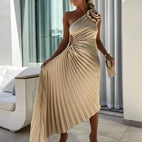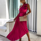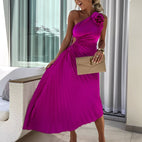 Rachael - Schickes Damenkleid mit Falten und Blüten an der Schulter