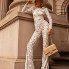 Strahlende Eleganz! Der Damen-Overall - Spitze mit Pailletten - Lange Ärmel - Rundhalsausschnitt - Enges Modell ist perfekt für einen Abend.