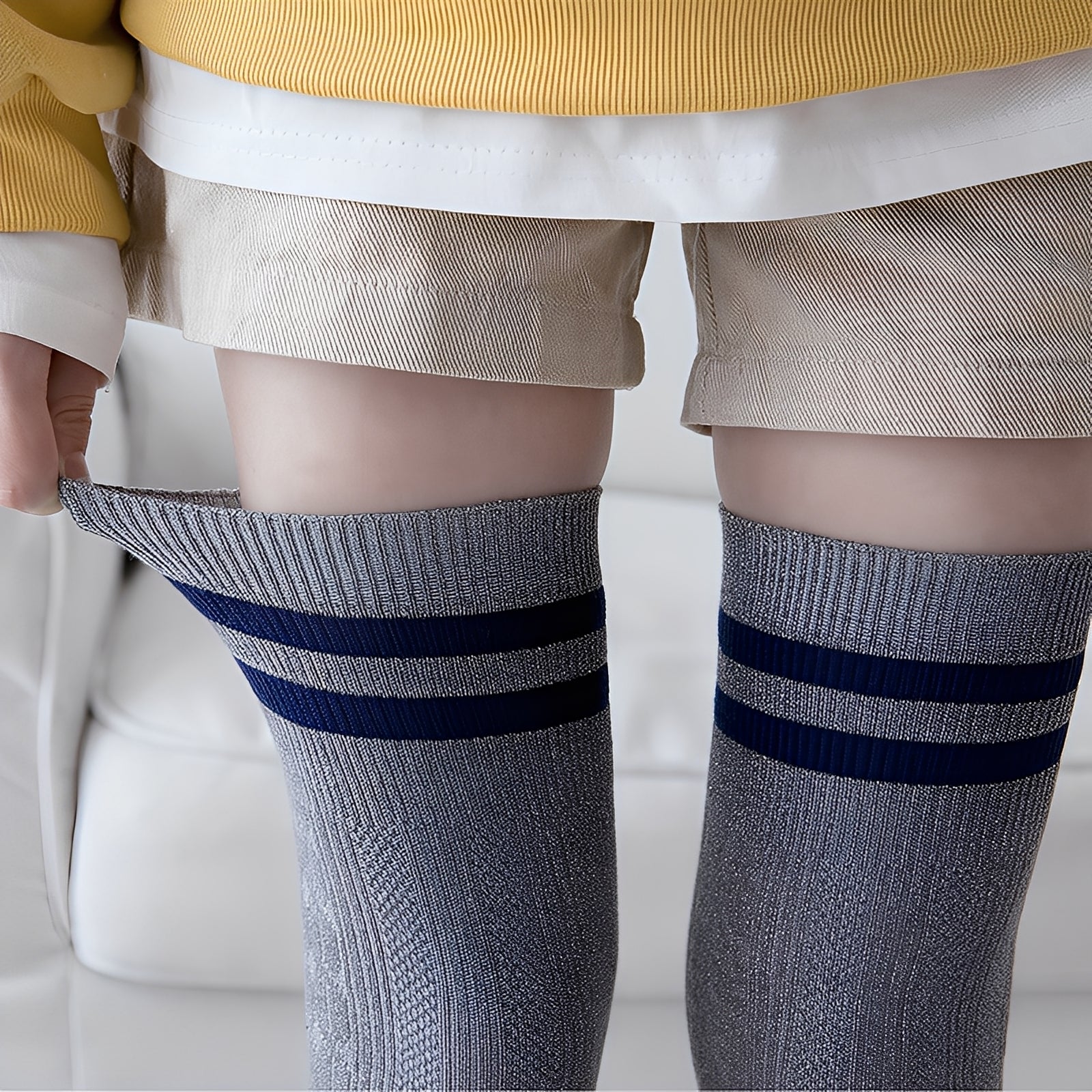 Die Zella-Socken kombinieren ein modernes Overknee-Design mit einem warmen, weichen Material, das sich gut an die Beine anpasst und Wärme bietet. Das elastische Material sorgt für festen Sitz und ist perfekt für den Alltag, das Homeoffice oder entspannte Winterspaziergänge. Durch ihr elegantes Design sind sie ein vielseitiges Accessoire in jedem Kleiderschrank.