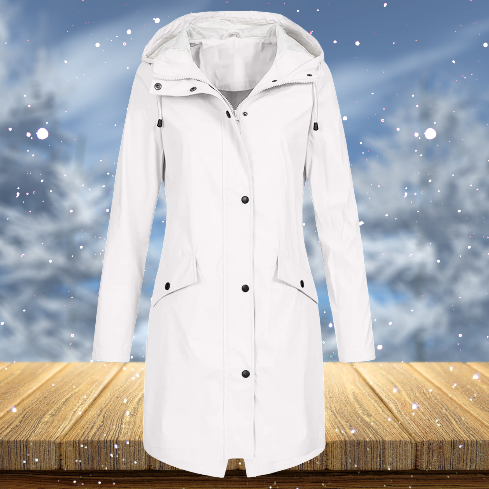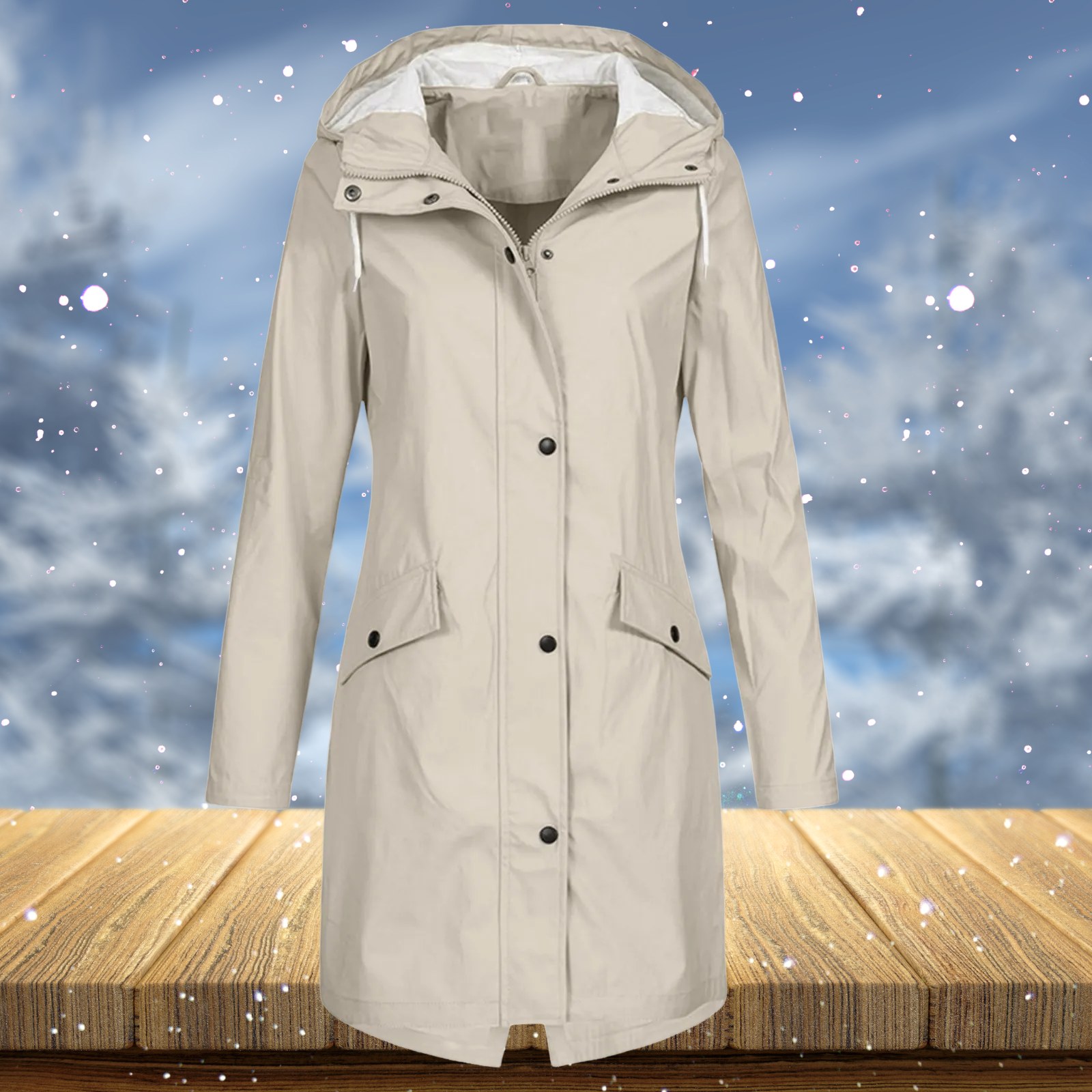 Verstellbare Details wie eine Kapuze mit Kordelzug und Ärmelbündchen erlauben eine individuelle Passform. Der Mantel passt sowohl zu alltäglicher als auch zu festlicher Kleidung und ist eine vielseitige und elegante Wahl für viele Anlässe.